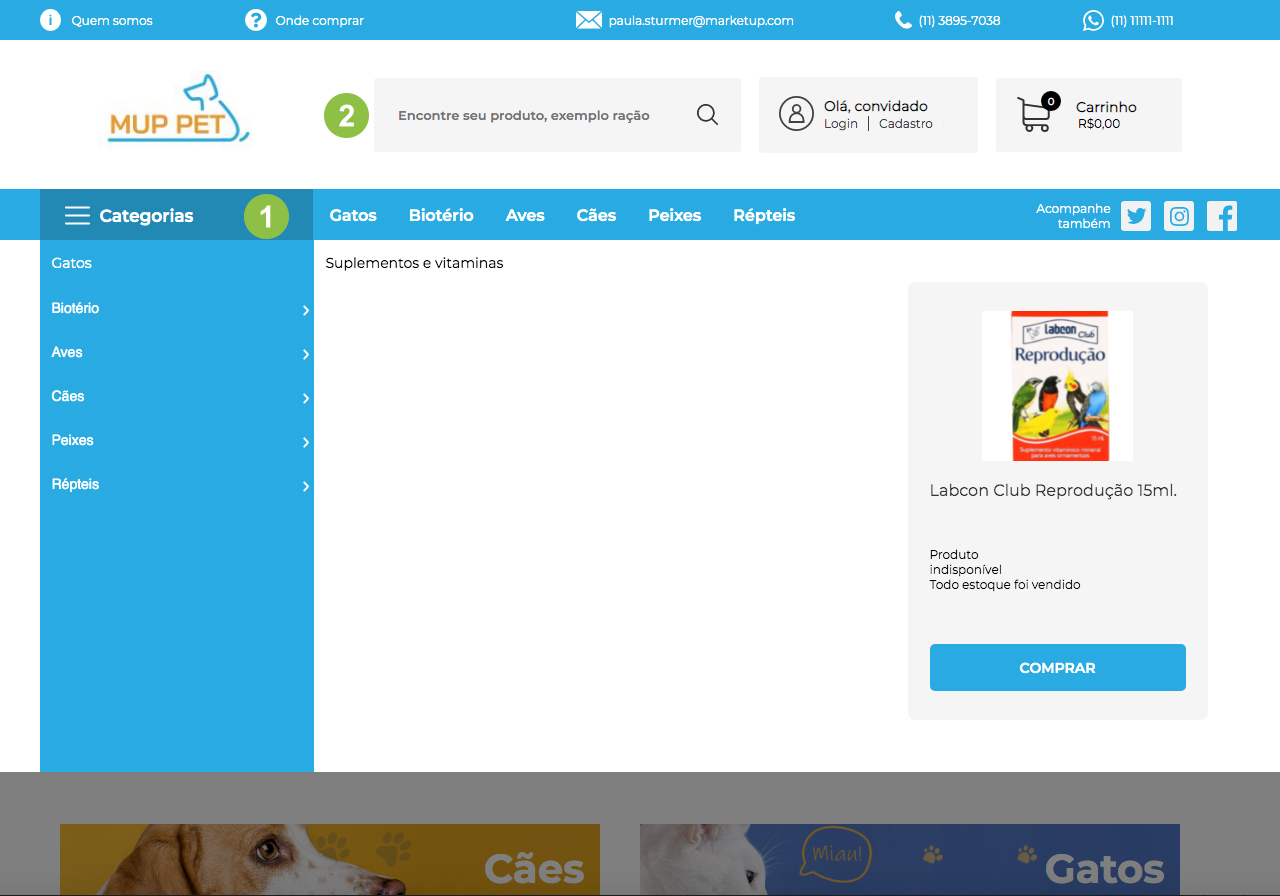 1. Meu carrinho: local onde você controlará os itens e quantidades dos produtos.