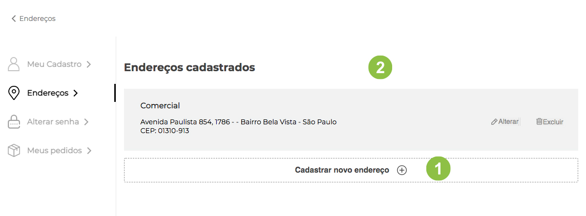 1. Clique em “Minha conta” e em seguida em ‘’Meu cadastro’’